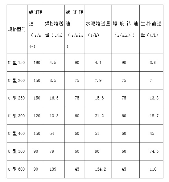 U型螺旋輸送機(jī)型號(hào)及參數(shù)